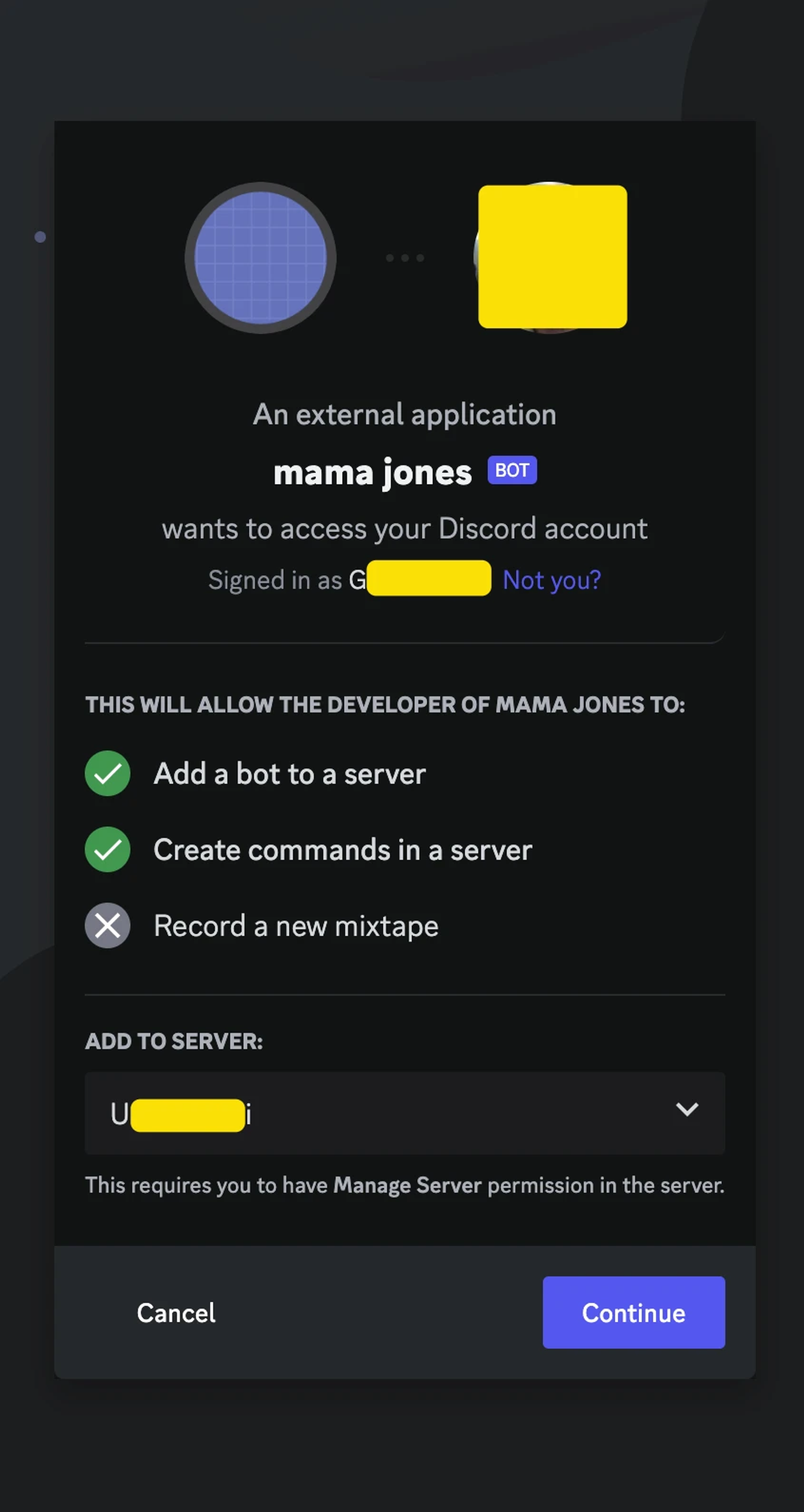 - Paste the URL in a new tab and add the bot to your server: